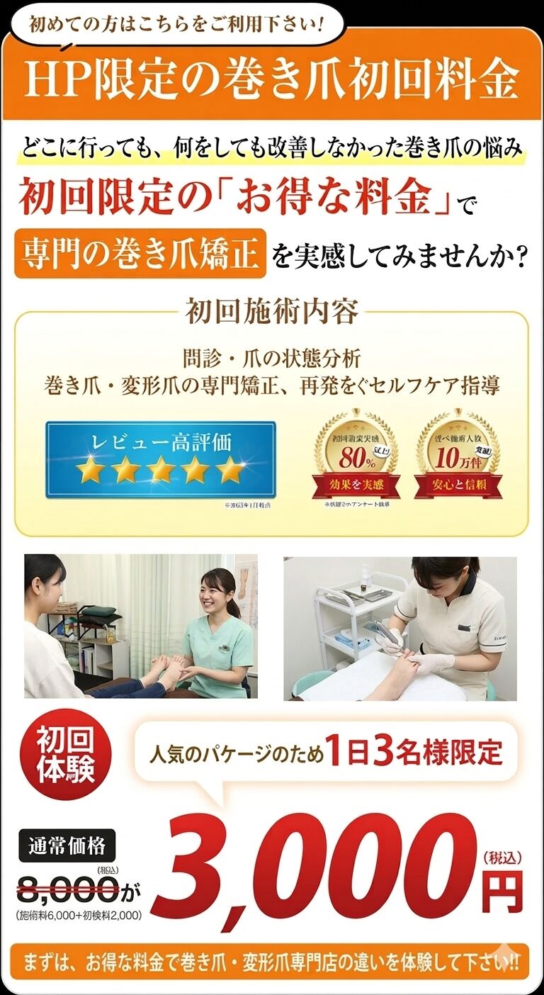 「まずは、巻き爪に特化したアプローチで爪の痛みを速やかに軽減させます。